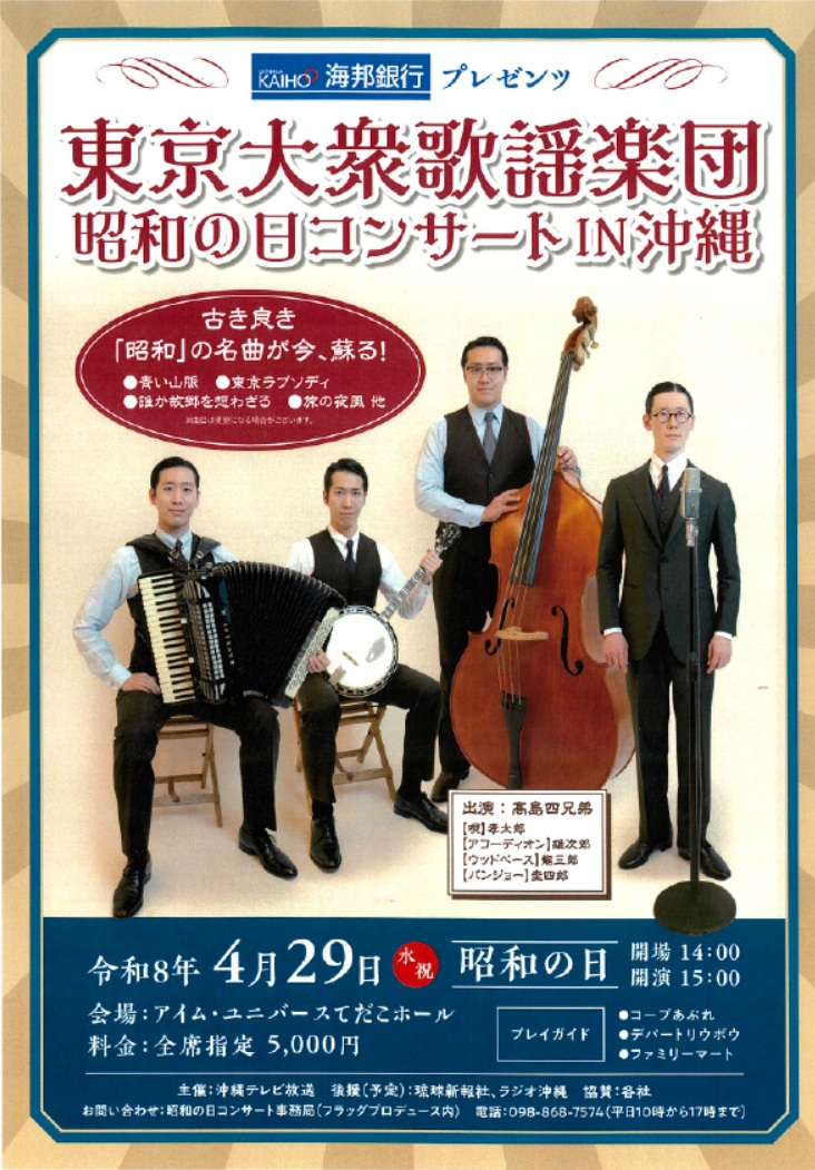 (先行販売)東京大衆歌謡楽団「昭和の日コンサート」(1/29~1/31)