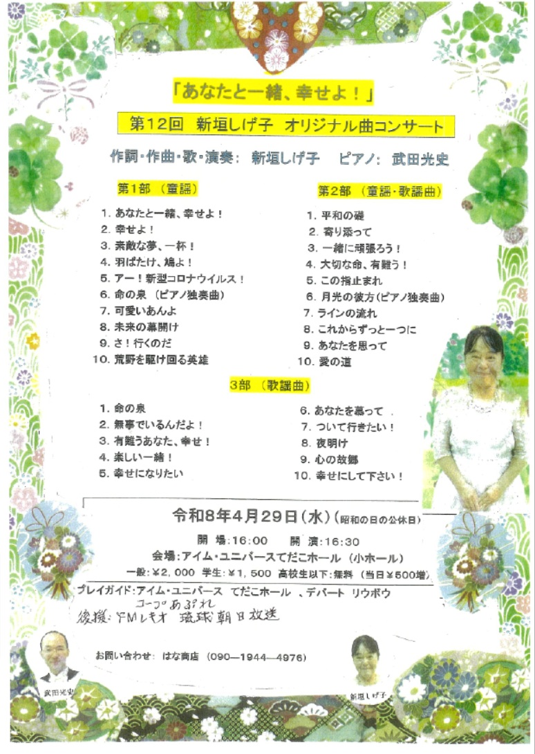 第12回「あなたと一緒、しあわせよ!」新垣しげ子オリジナル曲コンサート