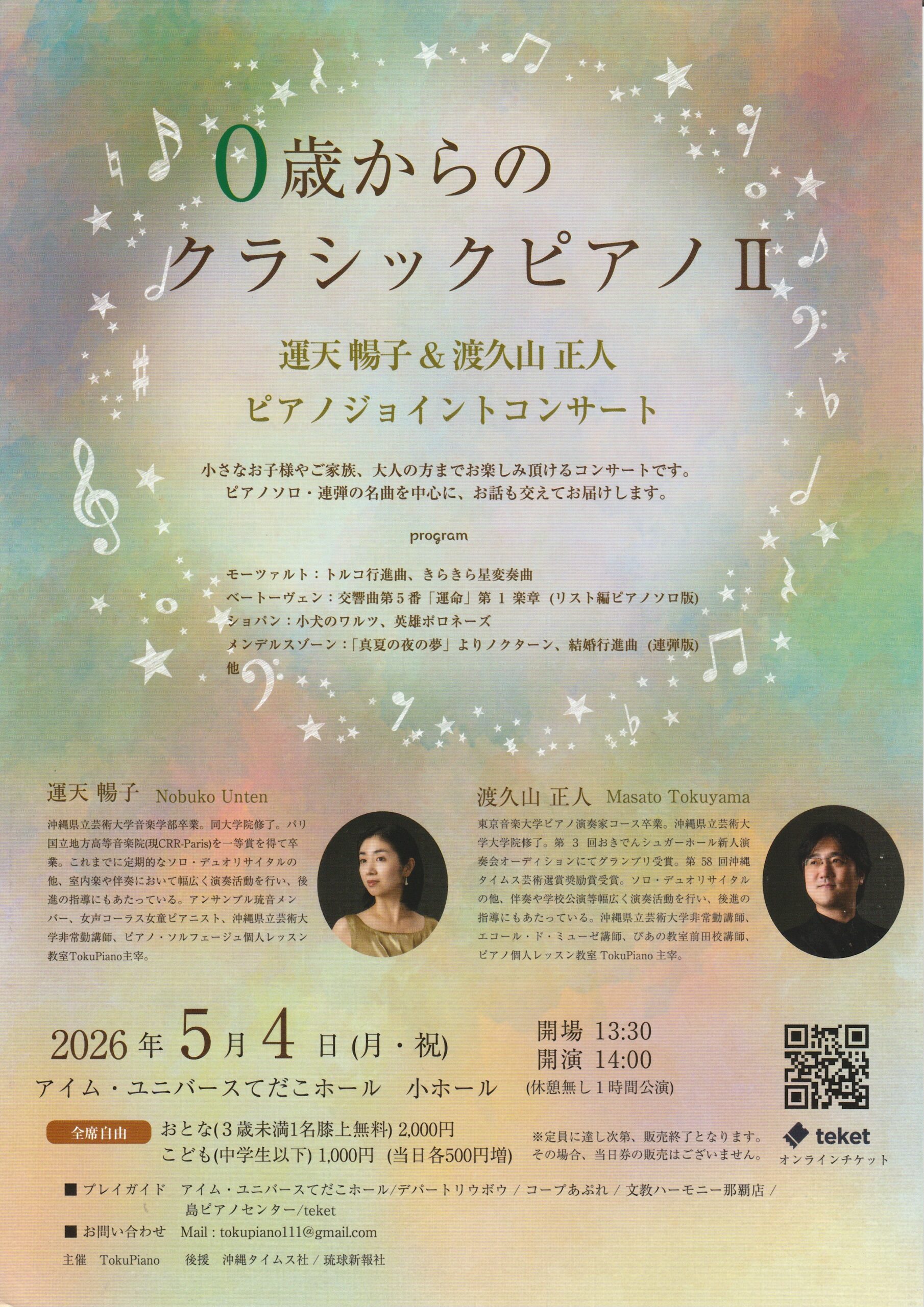 0歳からのクラシックピアノⅡ 運天暢子&渡久山正人ピアノジョイントコンサート