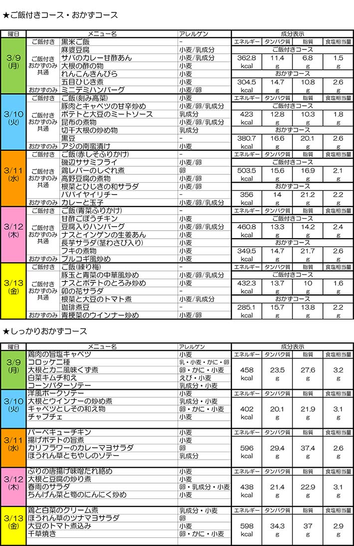 ゆ~たくメニュー