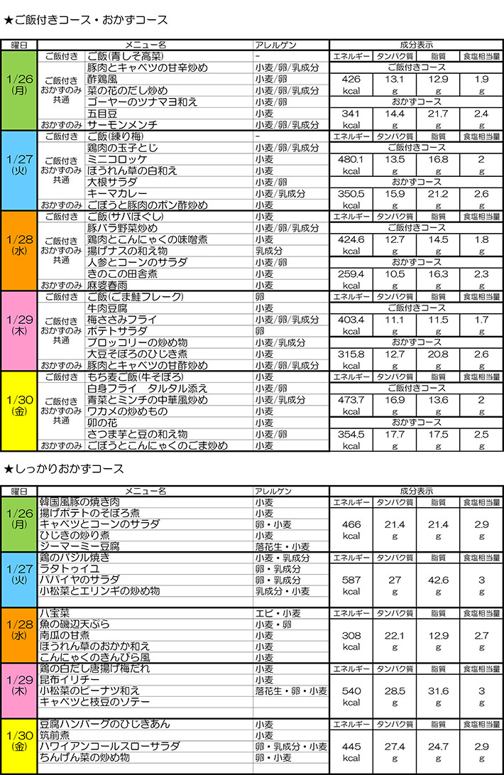 ■1月26日(月)~1月30日(金)お届け