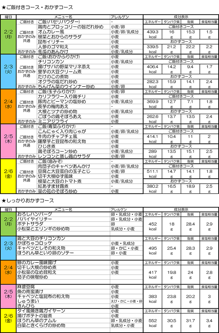 ■2月2日(月)~2月6日(金)お届け
