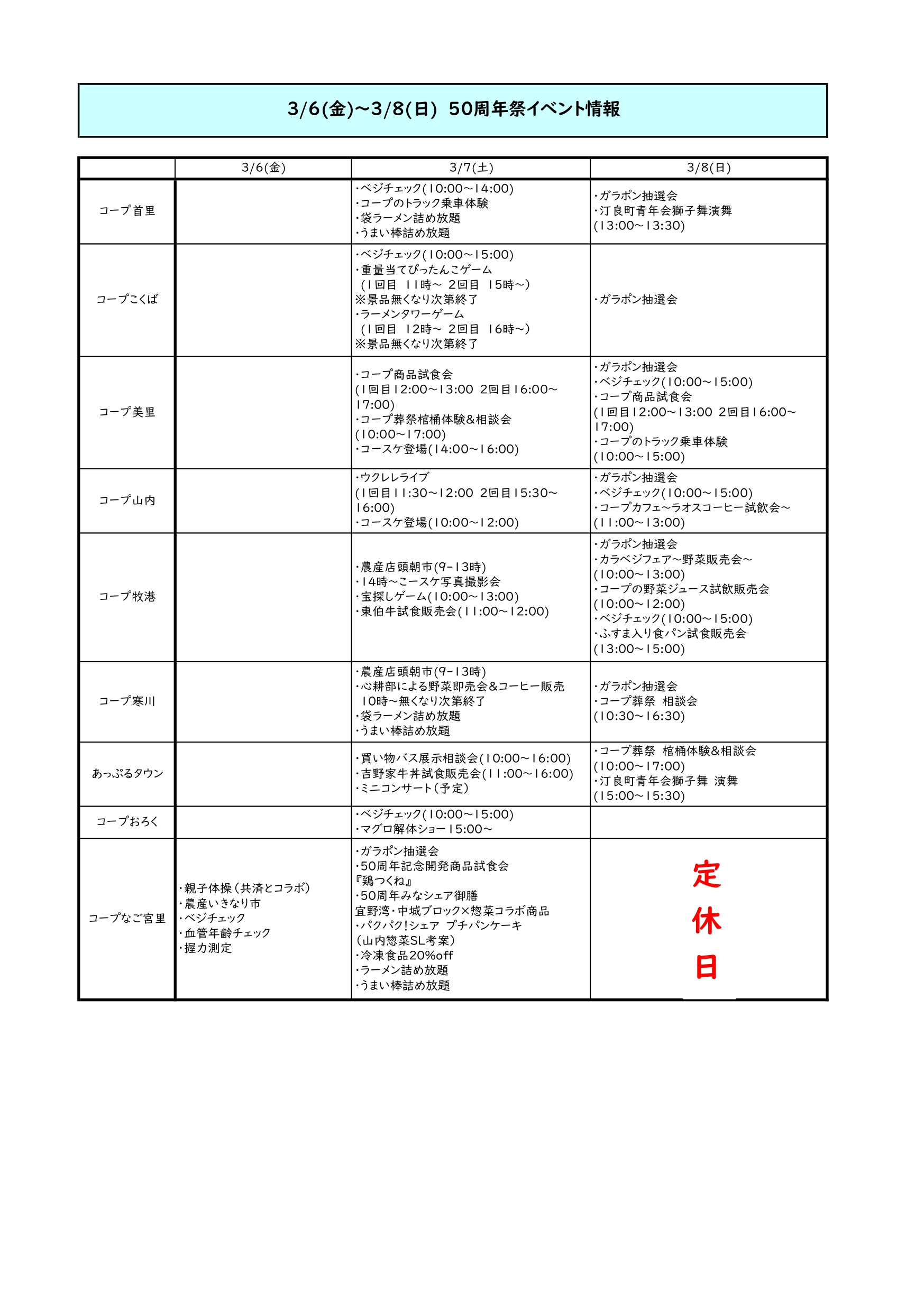 50周年祭を開催!3月7日(土)・8日(日)各店