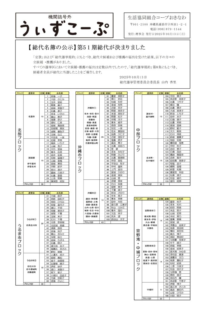 第51期総代が決まりましたので、皆様にお知らせいたします。