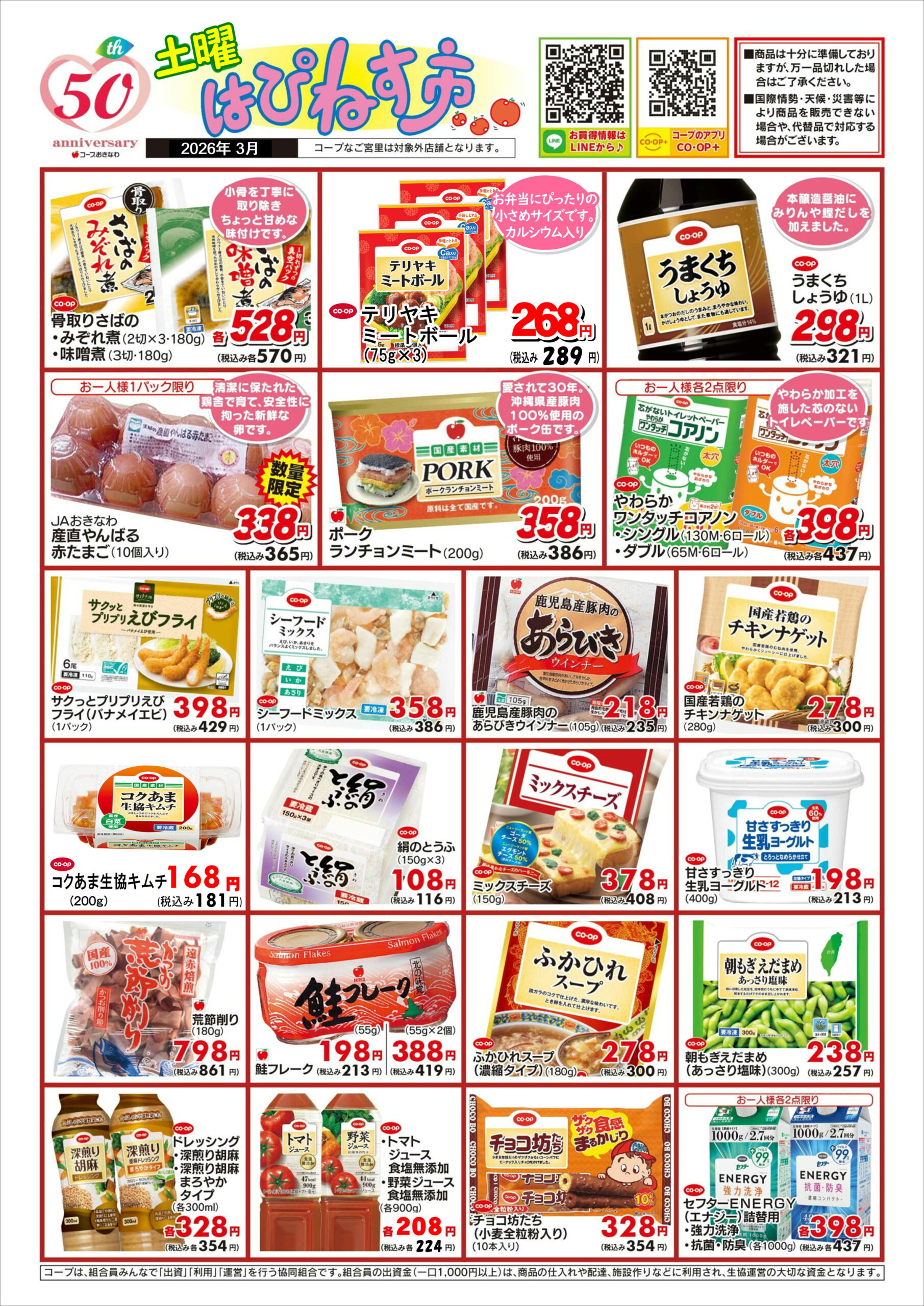 3月 お店「お買い得情報」「曜日サービス」「土曜はぴねす市」