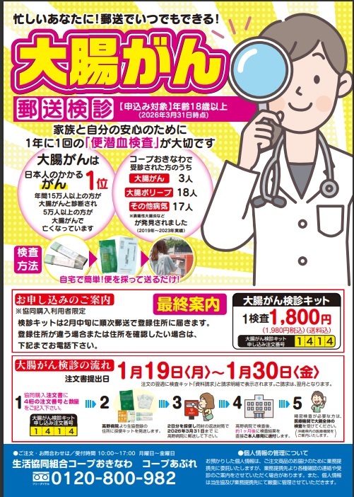 ①添付のチラシの注文番号と数量を協同購入の注文書へご記入下さい。(協同購入利用者限定となります) ②1~2週間程度で資料が、登録住所へ郵送で届きます。 ③内容確認しコープおきなわ専用QRコードまたはURLより本申込となります。 |